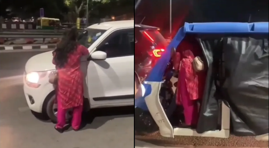 वीडियो में देखा जा सकता है कि महिला पहले कई गाड़ियों के आगे खड़ी होकर ड्राइवर से बात करने की कोशिश करती है। इसके बाद मौका मिलते ही एक ऑटो में चढ़ जाती है।